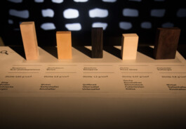 Visitors were introduced by a raw tree trunk, then could listen to the drinking sound of trees, made audible by a research group at ZHK using ultrasonic waves. The different parts of the viola are made out of specific wood that has different density and therefore sound properties. This aspect was shown in an interactive installation, where the haptic of the wood as an interface could be experienced together with the visual representation of their cells. Lucier Peter Erben from Munich collaborated with us by working on a viola throughout the duration of the exhibition and gave personal insights about the process of creating an instrument.