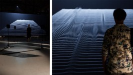 The core piece of the installation was a audiovisual Installation, where the separated parts of the specific tone spectrum of the viola where played in a 6 channel walkable sound space. The corresponding projection showes the frequency spectrum in time like a fingerprint of the instrument.